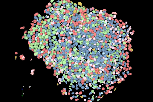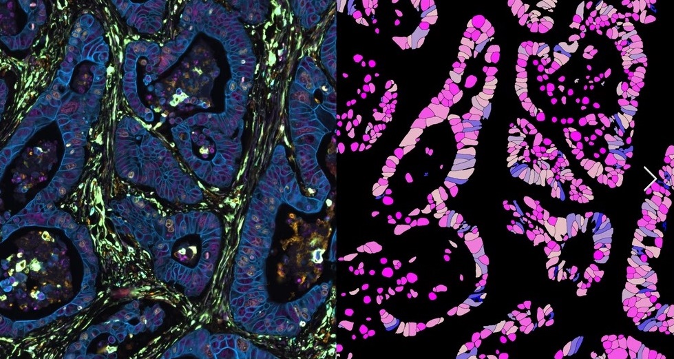 Результати сегментації за прикладом. 48-канальне зображення каналу товстої кишки людини, отримане за допомогою системи Leica Cell DIVE, проаналізоване за допомогою Aivia Segment by Example та забарвлене за допомогою вимірювань округлості.