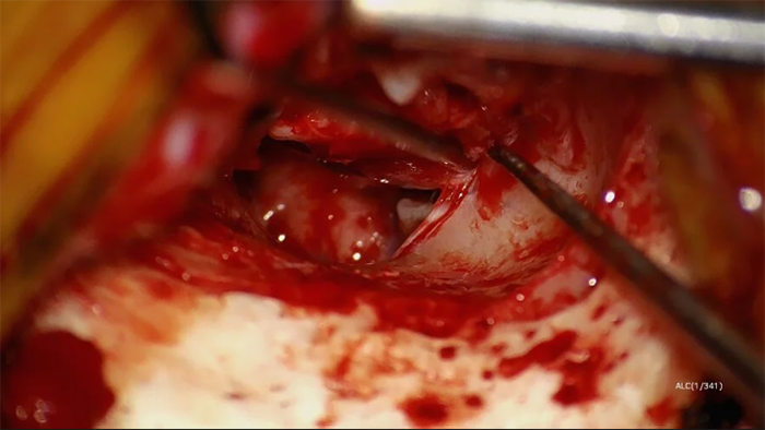 Рисунок 2: Ідентифікація нерва барабанної перетинки. Зображення надано доктором Шоном Фланаганом