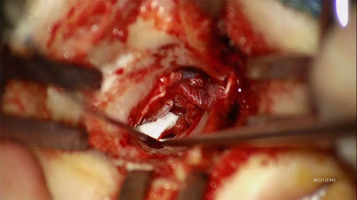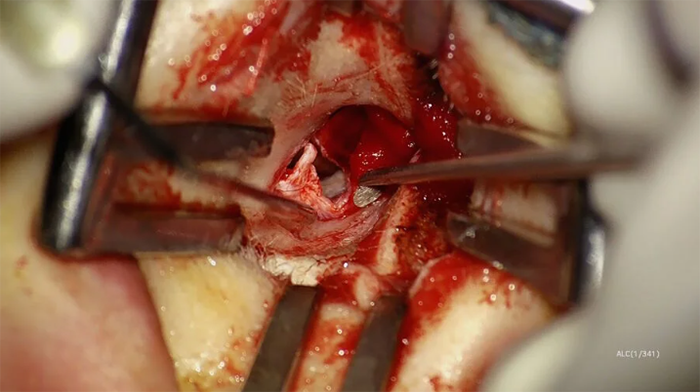 Рисунок 3: Введення трансплантата скроневої фасції. Зображення надано доктором Шоном Фланаганом