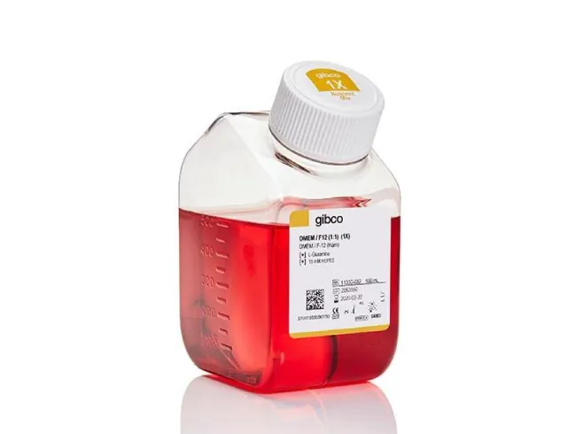Середовище для клітин DMEM/F-12 (Dulbecco’s Modified Eagle Medium / Ham’s F-12) — це комбіноване базальне середовище, яке поєднує високу поживність середовища DMEM із точним балансом мікроелементів і нутрієнтів середовища F-12.