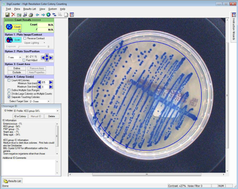 На экране предоставляется увеличенное изображение каждой исследовательской чашки для просмотра микробиологом и редактирования при необходимости. Изображения и результаты тестов сохраняются для дальнейшего просмотра.