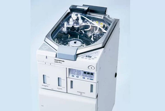 Автоматическая моечная машина эндоскопов Olympus – это сочетание высокой производительности и компактных размеров. Ширина машины – всего 45 сантиметров, что позволяет компактно разместить ее даже в самом ограниченном пространстве эндоскопического кабинета.